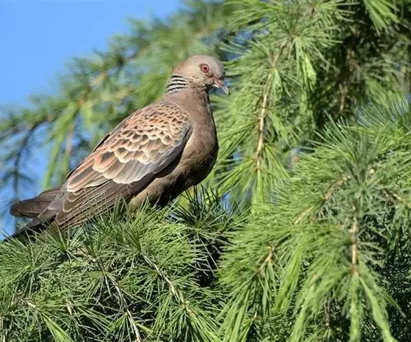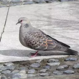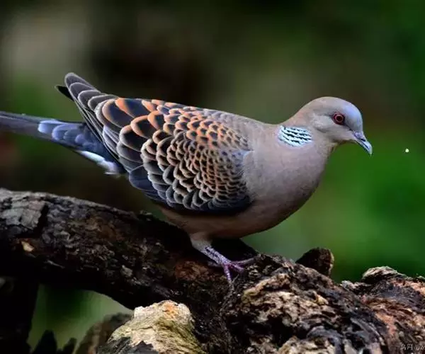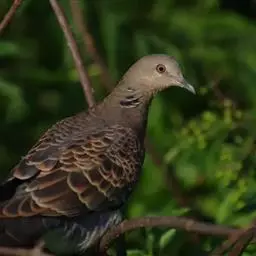 欧斑鸠(学名:Streptopelia turtur)体长27厘米,是一种体型略小的粉褐色斑鸠。颈侧具多黑白色细纹的斑块,翼覆羽深褐,具浅棕褐色鳞状斑。与火斑鸠的区别在体型较小,色彩较浅,翼覆羽无白色羽端,背及颈背褐色浓,颈及尾侧斑纹较白,胸部更现酒红色。眼周裸露皮肤红色。栖息于平原和低山丘陵地带的阔叶林、混交林和针叶林等各种森林中。以各种植物的果实和种子为食。也吃桑葚、玉米、芝麻、小麦等农作物和少量动物性食物。繁殖期5-8月。每窝产卵2枚。孵化期13-14天。雏鸟晚成性。分布于欧洲、非洲北部、中东、伊朗、中亚和蒙占西部,冬季偶见于印度西北部。