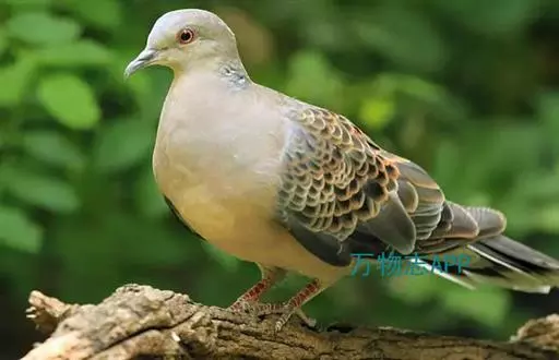 欧斑鸠体长27厘米,是一种体型略小的粉褐色斑鸠。颈侧具多黑白色细纹的斑块,翼覆羽深褐,…
