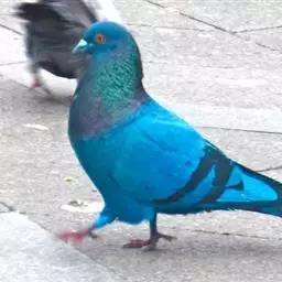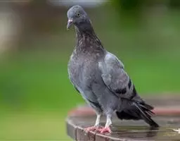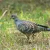 大小和野鸽相似,但体稍侯长些,通体深灰,颈基部两侧有一黑色羽斑羽缘镶以新月型白色。尾羽黑色,但外侧稍短者是明显白端,在降落地面尾展开时成为可见。