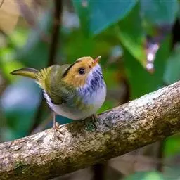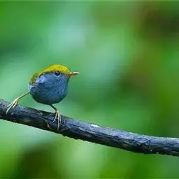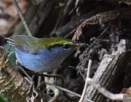 金冠地莺:形态与灰腹地莺相似,上体橄榄绿,前额至头顶渲染亮金黄色;下体几乎纯暗石板灰色,…