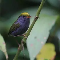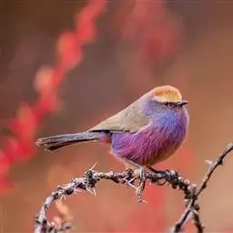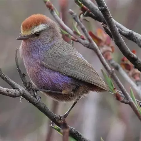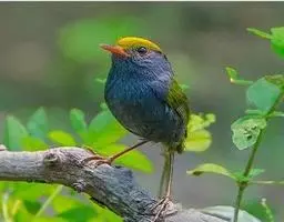 凤头雀莺:小型鸟类。体长9-10厘米,雄鸟呈毛茸茸的紫色和绛紫色,顶冠淡紫灰色,额及凤头白色,尾全蓝。…
