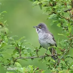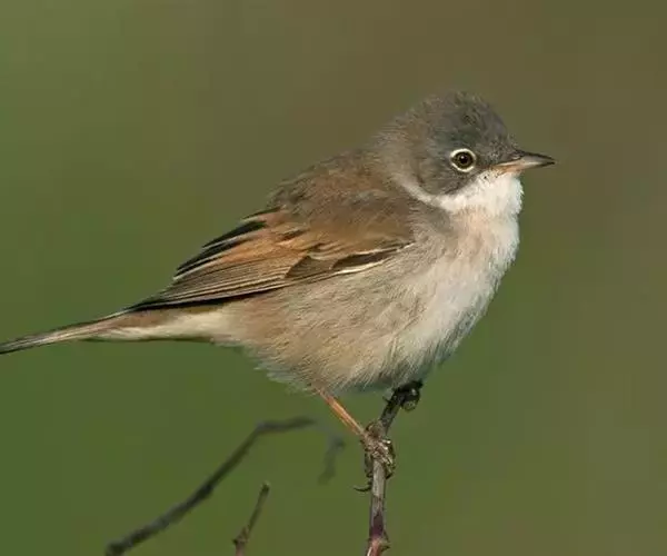 白喉林莺(学名:Sylvia curruca):体长10-13厘米,是一种类体型略小的莺鸟。喉白,上体灰褐或沙褐色,头顶较灰,贯眼纹黑褐或暗褐色。下体污白。耳羽深黑灰,胸侧及两胁沾皮黄色、褐色或淡粉红色。外侧尾羽羽缘白色。似沙白喉林莺但体羽色较深,脚色较深且嘴较大。