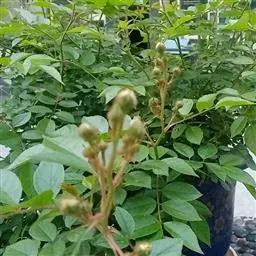 花后要剪掉干枯的花蕾。当月季花初现花蕾时,拣一个形状好的花蕾留下,其余的一律剪去。目的是每一个枝条只留一个花蕾,将来花开得饱满艳丽,花朵大而且香味浓郁。每季开完一期花后必须进行全面修剪。一般宜轻度修剪,及时剪去开放的残花和细弱、交叉、重叠的枝条,留粗壮、年轻枝条从基部起只留3-6厘米,留外侧芽,修剪成自然开心形,使株形美观,延长花期。另外,盆栽月季要选矮生多花且香气浓郁的品种。