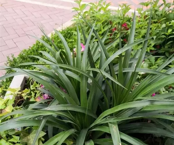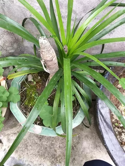 叶聚生在茎、分枝或小枝顶端,互相套迭,剑形,薄革质,长50- 00厘米,宽2-5厘米,向基部略变窄而后扩大,抱茎,无柄。