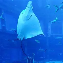 蝠鲼(Mobula),又被称为魔鬼鱼与毯魟。属于软骨鱼纲、蝠鲼科,它包含两个属,前口蝠鲼属和蝠鲼属。体呈菱形,宽大6m余。体青褐色。扣款大。眼下侧位,能侧视和俯视。头侧有1对有胸鳍分化的头鳍,向前突出。背鳍小,胸鳍翼状。尾细长如鞭,具尾刺。平时底栖生活,但有时上升表层游弋,并做远程洄游,行动敏捷。以浮游甲壳类和小鱼为食。卵胎生。分布于热带和温带各海区,中国见于东海、南海和台湾沿海。常见的如日本蝠鲼(Mobula japonica)、双吻前口蝠鲼(Manta birostris) 。