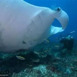 蝠鲼是一种生活在热带和亚热带海域的底层的软骨鱼类,被当地人称为“水下魔鬼”,但实际上蝠鲼是一种非常温和的动物。它们主要以浮游生物和小鱼为食,经常在珊瑚礁附近巡游觅食。它缓慢地扇动着大翼在海中悠闲游动,并用前鳍和肉角把浮游生物和其它微小的生物拨进它宽大的嘴里。当游泳时,头鳍从下向外卷成角状,向着前方;有时成群游泳,雌雄常偕行。主要食浮游甲壳动物,其次食成群的小型鱼类。鳃耙多角质化,呈一系列羽状筛板,起滤水留食作用 。