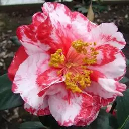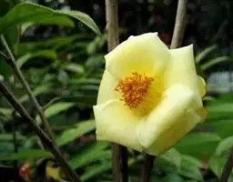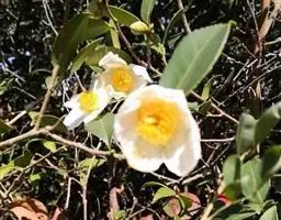 滇山茶(学名:Camellia reticulata Lindl.):灌木至小乔木,有时高达15米,嫩枝无毛。叶阔椭圆形,上面干后深绿色,发亮,下面深褐色,无毛,侧脉6-7对,边缘有细锯齿。花顶生,红色,直径10厘米,无柄;苞片及萼片10-11片,花瓣红色,6-7片,最外1片近似萼片,倒卵圆形,长2.5厘米,背有黄绢毛,其余各片倒卵圆形。蒴果扁球形,高4.5厘米,宽5.5厘米,3爿裂开,果爿厚7毫米,种子卵球形,长约1.5厘米。