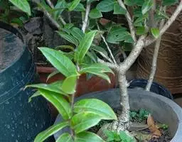 此方法最简便,扦插时间以9月为最佳,春季亦可。选择生长良好、半木质化枝条,除去基部叶片,保留上部3片叶,用利刀切成斜口。浸入200ppm 至500ppm 吲哚丁酸5至15分钟,晒干后插入沙盆或蛭石盆。插后浇水,40天左右伤口愈合,60天左右生根。用蛭石作插床,出根比沙床快些。