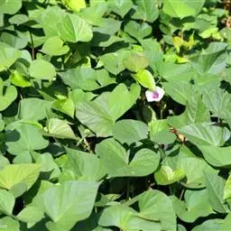 番薯 Lam.),多年生草质藤本植物,具有乳汁;其块根为白、红或黄色;茎生不定根;叶呈宽卵形或卵状心形,叶色有浓绿、黄绿、紫绿等,前端渐尖,基部呈心形或近平截;花冠为粉红、白、淡紫或紫色,呈钟状或漏斗状,无毛;蒴果呈卵形或扁圆形;由于番薯是于异花授粉,自花授粉常不结实,所以有时只见开花不见结果。 种子1-4粒,通常2粒,无毛。番薯原产于南美洲及大、小安的列斯群岛,现已广泛栽培在全世界的热带、亚热带地区,但在一些较北的地区如黑龙江省也已栽种成功,中国大多数地区都普遍栽培。番薯适应性强,喜温暖多光而不耐霜冻,抗旱耐碱,适种于肥沃而排水良好的砂质壤土,是一种易于保收的作物。番薯是一种高产而适应性强的粮食作物,在中国南方,有“一造番薯半年粮”的说法, 与工农业生产和人民生活关系密切;块根除作主粮外,也是食品加工、淀粉和酒精制造工业的重要原料;根、茎、叶可作