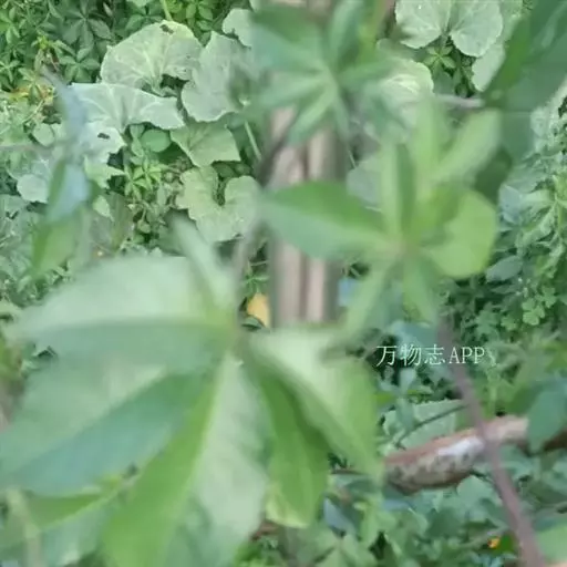 叶掌状5深裂或全裂,裂片卵状披针形、卵形或椭圆形,中裂片较大,长4-5厘米,宽2-2.5厘米,两侧裂片稍小,顶端渐尖或稍钝,具小短尖头,基部楔形渐狭,全缘或不规则微波状,基部1对裂片通常再2裂;叶柄长2-8厘米,基部具小的掌状5裂的假托叶(腋生短枝的叶片)。