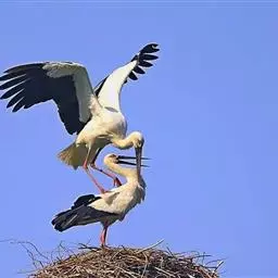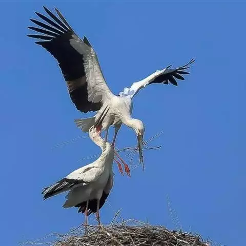 在欧洲,人们称白鹳称为“送子鸟”。相传,送子鸟白鹳落到谁家屋顶造巢安家,谁家就会喜得贵子,幸福美满。因此,在欧洲的乡村,经常能看到住家的屋顶烟囱上搭着一个平台,那就是专为白鹳准备的。而千百年来,似乎也确实是白鹳筑巢的家庭,都会很快生下小孩子。而科学的说法是古代时当主人家有人怀孕时,这家的烧火取暖的时间会比一般人家长,而白鹳更愿意选择这样家庭的烟囱口造巢安家。久而久之,善良的人们还是把白鹳认为吉祥的送子鸟,成为了一种民俗。迪斯尼动画也巧妙的应用了这个民俗典故,当天真的孩子问爸爸妈妈他们是怎么来到这个世界时,父母就会说“是白鹳送来的”。