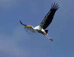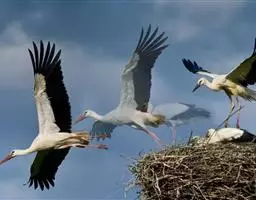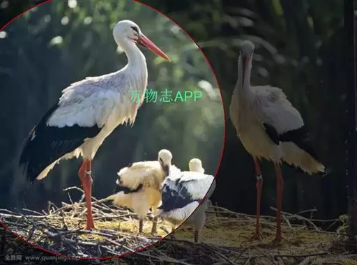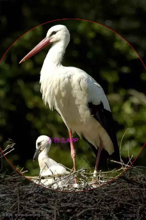 白鹳(英文名称:White Stork)是欧洲白鹳和东方白鹳的通称。属大型涉禽。其羽毛以白色为主,翅膀具黑羽,成鸟具细长的红腿和细长的红喙。共有三个亚种,大小略有不同。嘴长而粗壮,在高树或岩石上筑大型的巢,飞时头颈伸直。白鹳在欧洲是非常有名的鸟,常常在屋顶或烟囱上筑巢。为食肉动物,其食性广,包括昆虫,鱼类,两栖类,爬行类,小型哺乳动物和小鸟。觅食地大部分为具低矮植被的浅水区。一夫一妻制,但非终生。雌鸟通常每年产4枚卵,孵化需33-34天,58-64天后出巢。