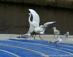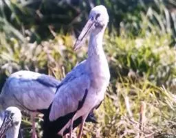 中国浙江台州天台籍著名散文家陆蠢写了一篇《鹤》,文中叙述他十七八岁时,邻哥儿在平头潭边捉到一只鸟,“长脚尖喙,头有缨冠,羽毛洁白”。开始,以为是一只鹤,抢回家里养,只见这只鸟“样子确相当漂亮,瘦长的脚,走起路来大模大样,象个“宰相步”、“头上有一簇缨 毛,略带黄色,尾部很短”、“老是缩着头颈,有时站在左脚上,有时站在右脚上,有时站在两只脚上,用金红色的眼睛斜看着人。”他们将这只鸟养了相当时日,有一天,他的舅父来了,才知道这是一只 “长脚鹭鸶”。 陆蠢所描述的这只漂亮的鸟,实际上应叫“白鹳”,在始丰溪两岸的树林中,芦苇丛里栖居。