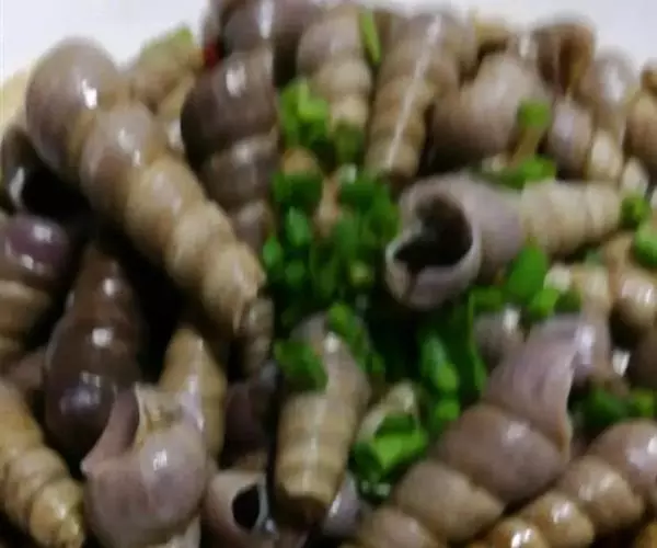 山坑螺呈圆锥形,如小手指大小,每年秋天是吃山坑螺的最佳时节。