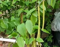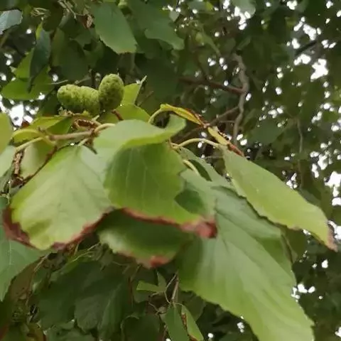 尼泊尔桤木 乔木,高达15米;树皮灰色或暗灰色,平滑;枝条暗褐色,无毛;幼枝褐色,疏被黄色短柔毛或近无毛;芽具柄,具2枚芽鳞,光滑。