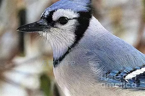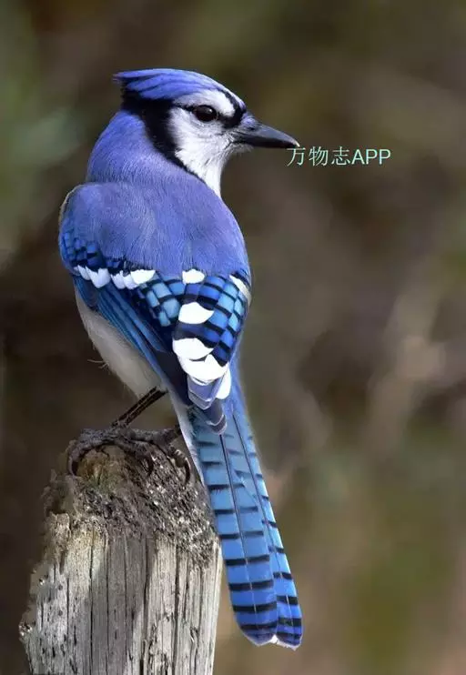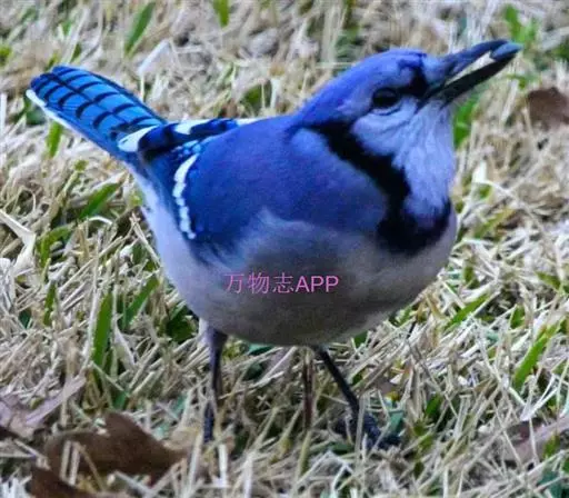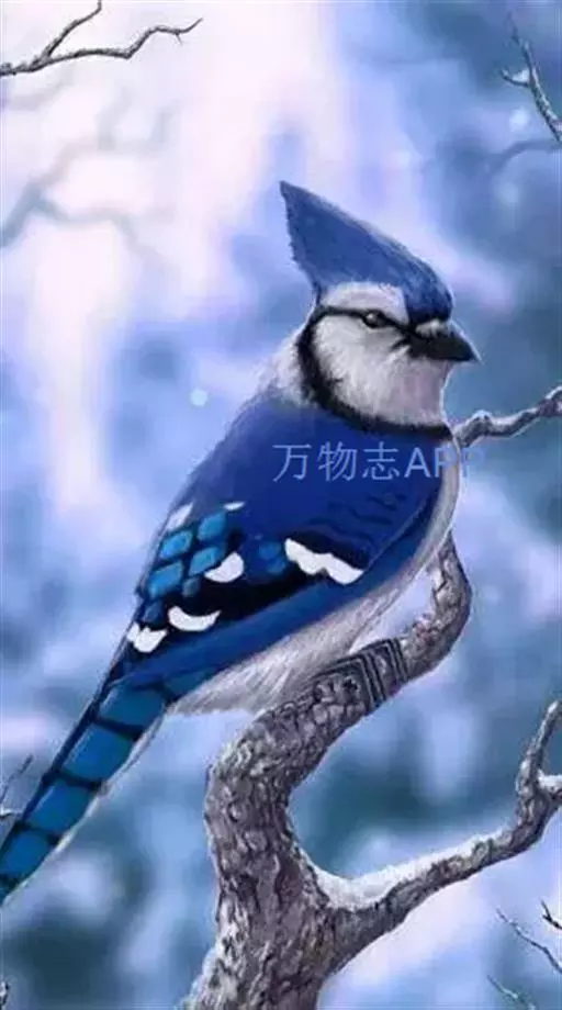 冠蓝鸦(学名:Cyanocitta cristata):体长22-30厘米,体重70-100克,翼展34-43厘米。顶冠明显,羽色为薰衣草蓝或淡蓝色,颈后、翅膀内侧、尾羽内侧和面部为白色。腹部为米白色,颈部有黑色领环,延伸至面部两侧,这些黑色部分的形态有很大的个体差异,有助于冠蓝鸦互相辨认。初级飞羽和尾羽主要为天蓝色,并有明显的黑色和白色线条。雄鸟和雌鸟外形几乎完全相同,雄鸟体型稍大。鸟喙和腿爪黑色,虹膜黑褐色。