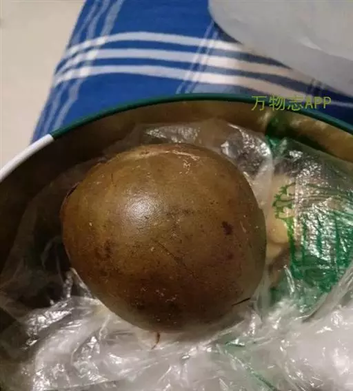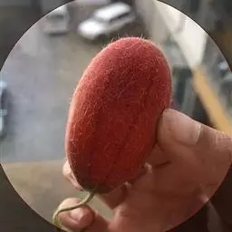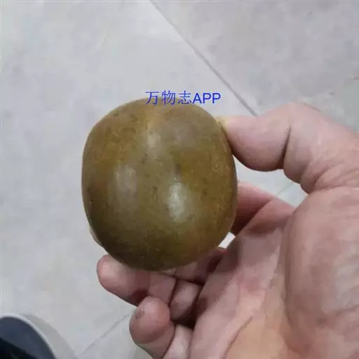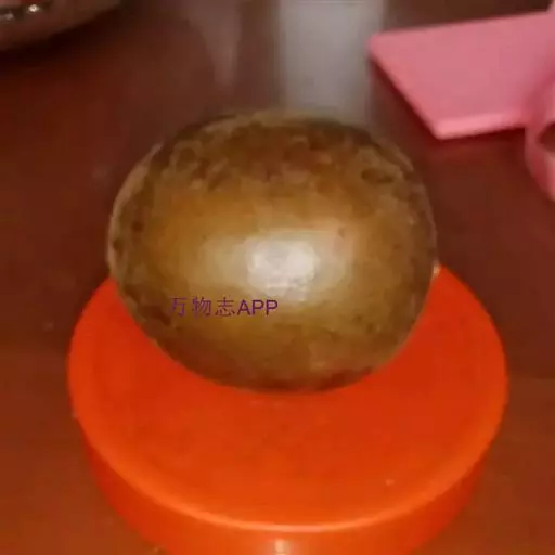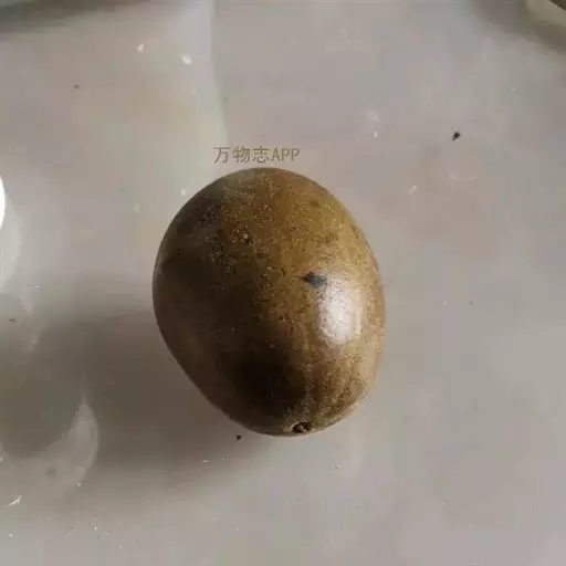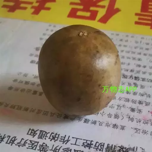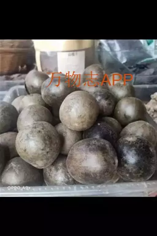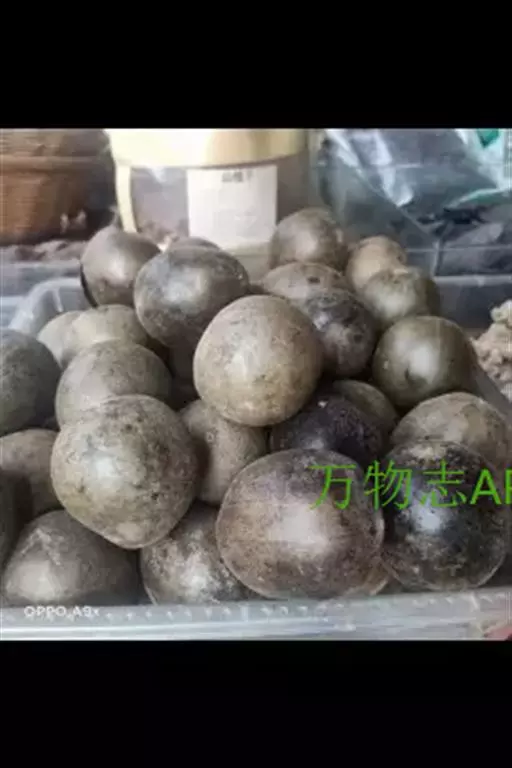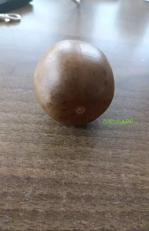 本品呈卵形、椭圆形或球形,长4.5~8.5cm,直径3.5~6cm。表面褐色、黄褐色或绿褐色,有深色斑块和黄色柔毛,有的具6~11条纵纹。顶端有花柱残痕,基部有果梗痕。体轻,质脆,果皮薄,易破。果瓤(中、内果皮)海绵状,浅棕色。种子扁圆形,多数,长约1.5cm,宽约1.2cm;浅红色至棕红色,两面中间微凹陷,四周有放射状沟纹,边缘有槽。气微,味甜。