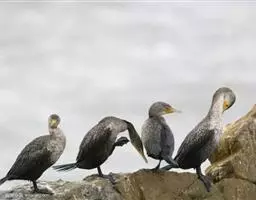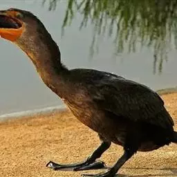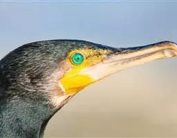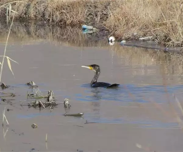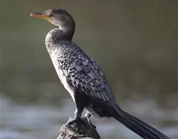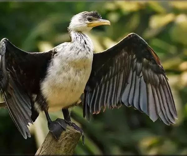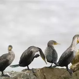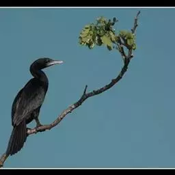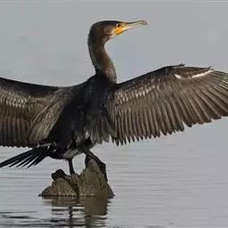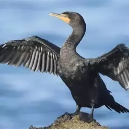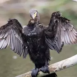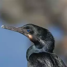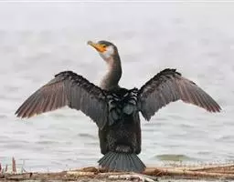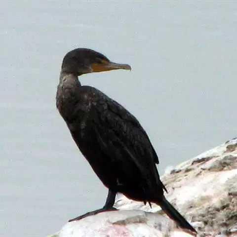 普通鸬鹚(学名:Phalacrocorax carbo)是大型水鸟。体长72-87厘米,体重大于2千克。通体黑色,头颈具紫绿色光泽,两肩和翅具青铜色光彩,嘴角和喉囊黄绿色,眼后下方白色,繁殖期间脸部有红色斑,头颈有白色丝状羽,下胁具白斑。