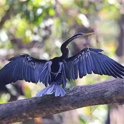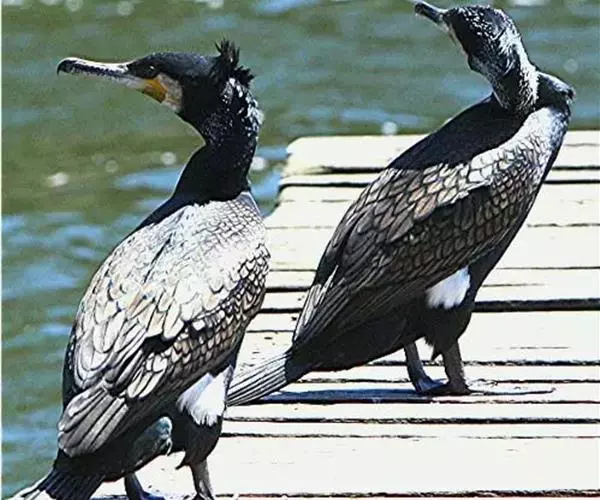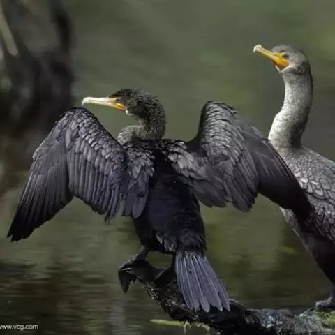 鸬鹚的羽色主要为黑色面带有紫色的金属光泽,到了生殖季节,雄鸟头部和颈部会长出许多白色的丝状羽。嘴强而长,锥状,先端具锐钩,适于啄鱼,下喉有小囊。脚后位,趾扁,后趾较长,具全蹼。栖息于海滨、湖沼中。飞时颈和脚均伸直。