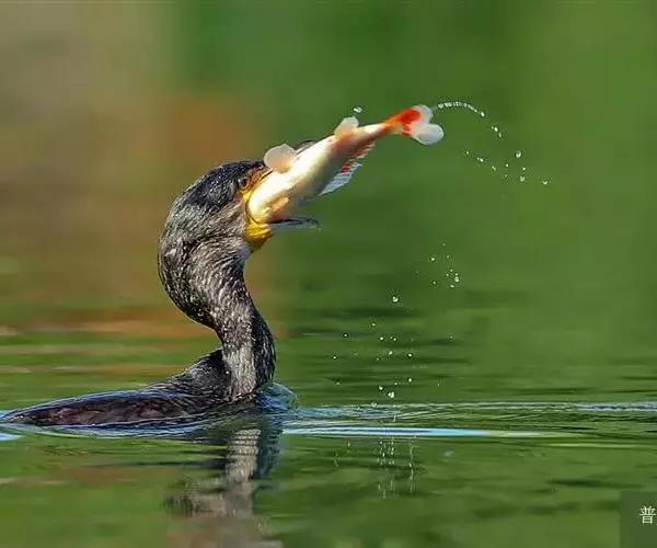 当鸬鹚幼雏60日龄左右,就可让其下水。100日龄后逐渐让其跟随成年鸬鹚学习捕鱼。150日龄后就可逐渐进行正常捕鱼。训练捕鱼时,需用莎草、藁草或别的草茎做成的圈环(也可用特制铜环)套上鸬鹚颈上,使其只能吞下小鱼,不能吞下比较大的鱼。当鸬鹚每次捕到大鱼时.取下鱼后应喂上1条小鱼以资鼓励,使其多下水捕鱼。开始训练也可先用很多的绳子缚在鸬鹚的脚上,绳的另一端缚在河港的岸边,把鸬鹚放到水里,叫鸬鹚入水捉鱼,等捉到了鱼, 驯练的人,口里发出特别的叫声,将鸬鹚叫回岸上来,再用小鱼喂给它吃。吃过以后,再赶到水里去,叫它去捕鱼。 这样天天训练,大约经过一个月,便可用一只小船,让鸬鹚站在两边船舷上,再把船摇到一定的地方,把它赶下水去捉鱼。这样训练一个多月,就可以完全驯服,听渔人指挥。