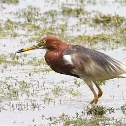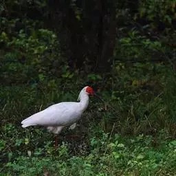 虹膜翠绿色,眼先橄榄绿色,眼周和喉侧裸露皮肤黄色,上嘴黑色,嘴缘和下嘴灰白色,喉囊橙黄色,脚黑色。