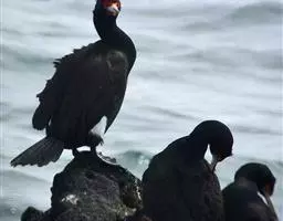 海鸬鹚:俗名乌鹈。典型的海上鸬鹚。体长约70厘米,体羽黑色具光泽。脸红色,与红脸鸬鹚甚似,但繁殖期…