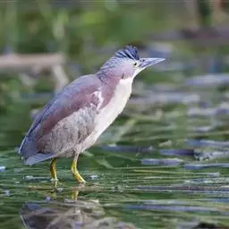 幼鸟似成鸟冬羽,但色较淡,上体多呈暗茶褐色,头无冠羽,胸、腹中央为丝亮白色。