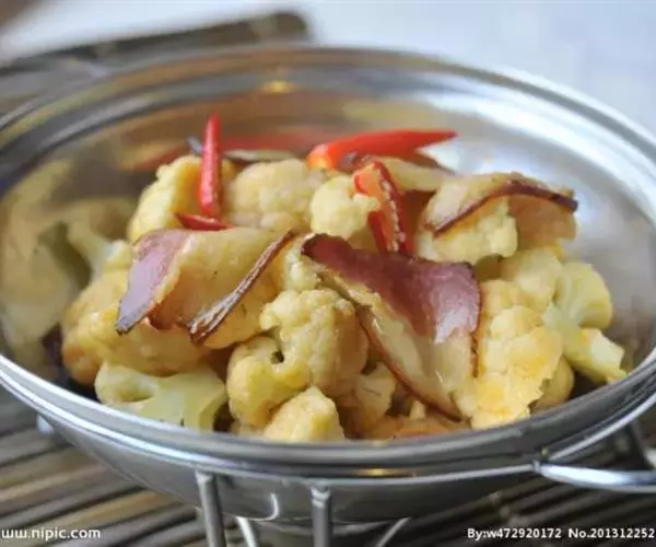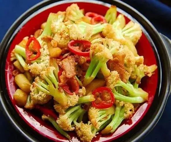 2、腊肉选肥一点的是要借助腊肉煸炒出来的油炒至这道菜,菜会很香,虽然看不到肉,偶尔看到几个肉渣而已。所以干锅菜花不是纯素菜,有腊肉油在,肯定香,所以放入炒菜油的时候一定是平时量的一半或者三分之一,虽然干锅菜油大,但是从健康角度说,少点没坏处。