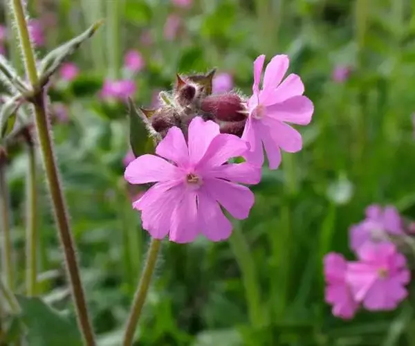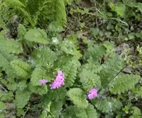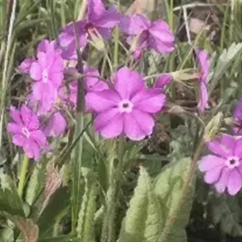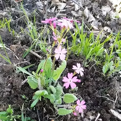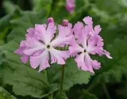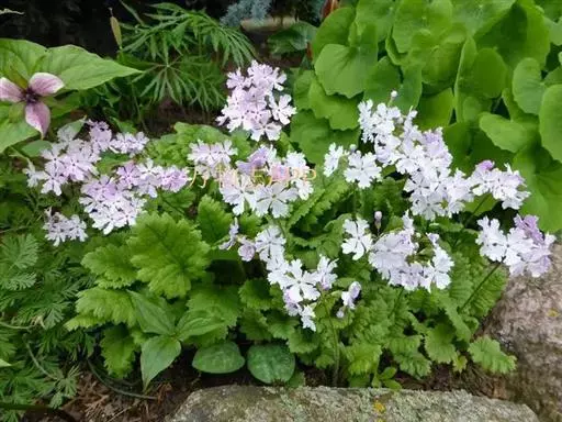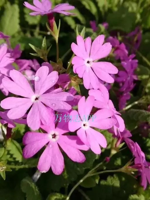 樱草(学名:Primula sieboldii E. Morren):春花科报春花属多年生草本,根状茎倾斜或平卧,叶片卵状矩圆形至矩圆形,稀近圆形或截形,边缘圆齿状浅裂,上面深绿色,下面淡绿色,两面均被灰白色多细胞长柔毛,花葶高可达30厘米,伞形花序顶生,苞片线状披针形,花萼钟状,花冠紫红色至淡红色,稀白色,蒴果近球形,长约为花萼的一半。5月开花,6月结果。
