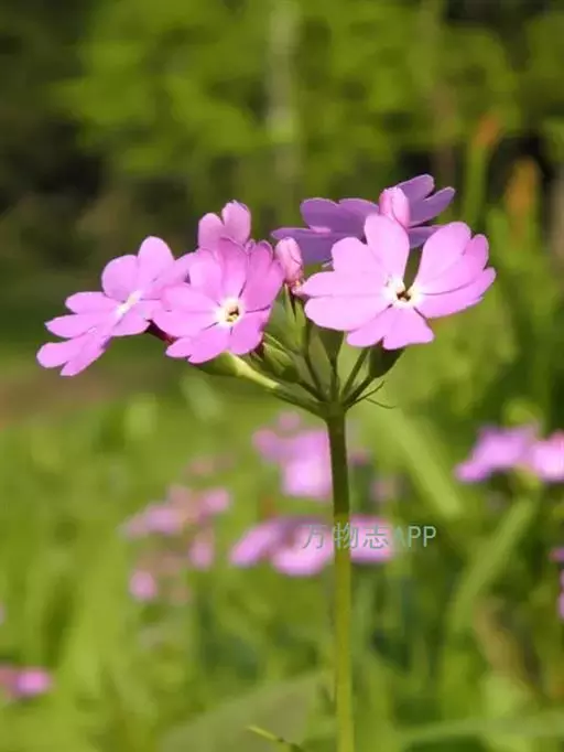 花葶高12-25(30)厘米,被毛;伞形花序顶生,5-15花;苞片线状披针形,长4-10毫米,微被毛或近于无毛;花梗长4-30毫米,被毛同苞片;花萼钟状,长6-8毫米,果时增大,长可达15毫米,分裂达全长的1/2-2/3,裂片披针形至卵状披针形,稍开展,外面疏被短柔毛或无毛,边缘具小睫毛;花冠紫红色至淡红色,稀白色,冠筒长9-13毫米,冠檐直径1-2(3)厘米,裂片倒卵形,先端2深裂,小裂片全缘或具小圆齿;长花柱花:雄蕊着生处稍低于冠筒中部,花柱长近达冠筒口;短花柱花:雄蕊顶端接近冠筒口,花柱略超过冠筒中部。