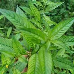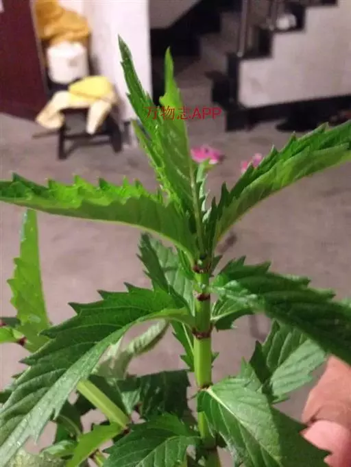 叶具极短柄或近无柄,长圆状披针形,多少弧弯,通常长4-8厘米,宽1.2-2.5厘米,先端渐尖,基部渐狭,边缘具锐尖粗牙齿状锯齿,两面或上面具光泽,亮绿色,两面均无毛,下面具凹陷的腺点,侧脉6-7对,与中脉在上面不显著下面突出。轮伞花序无梗,轮廓圆球形,花时径1.2-1.5厘米,多花密集,其下承以小苞片;小苞片卵圆形至披针形,先端刺尖,位于外方者超过花萼,长达5毫米,具3脉,位于内方者,长2-3毫米,短于或等于花萼,具1脉,边缘均具小纤毛。