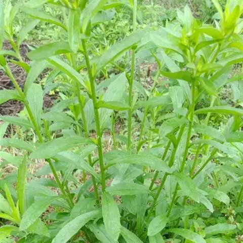 地笋(学名:Lycopus lucidus Turcz.):多年生草本,根茎横走,具节,节上密生须根。叶具极短柄或近无柄,长圆状披针形,两面或上面具光泽,亮绿色,两面均无毛。轮伞花序无梗,轮廓圆球形,小苞片卵圆形至披针形,位于外方者超过花萼。花萼钟形,两面无毛,外面具腺点。花冠白色,花丝丝状,无毛,花药卵圆形,2室,花柱伸出花冠。小坚果倒卵圆状四边形,褐色,边缘加厚,背面平,腹面具稜,有腺点。花期6-9月,果期8-11月。