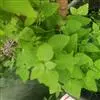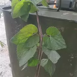 叶在主茎上的互生,在茎上部渐疏而呈苞片状,在侧枝上的近于对生;叶柄短,长约2-3毫米,被白色柔毛;叶片阔心状卵形,心形或卵形,长宽约1-1.5厘米,顶端钝或急尖,叶基心形或较圆钝,近全缘,叶脉一般不甚明显,灰绿色,上面被较密,而下面被较疏的平伏白色柔毛。