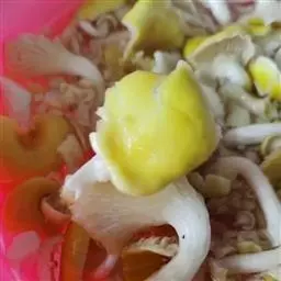 2. 肉排洗过,斩碎,加调味品捞过;