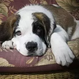 在刚出生时食用母乳,断奶后,要少食多餐,断奶初期一天喂食 4 次以上。 6 个月左右,1 天应该保证喂食 3 次。随年龄增长逐步降为每天喂食 2 次。每次喂食要掌握好份量。尽量不要喂给幼犬人吃的东西,会造成幼犬营养吸收不均衡,影响发育 。