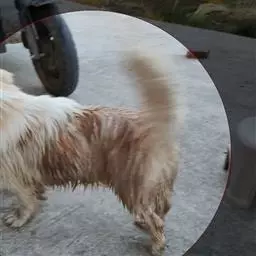 4、尾部下方。如果这里有一些黄色的印子,就说明幼犬有过腹泻或下痢的迹象,不宜购买。
