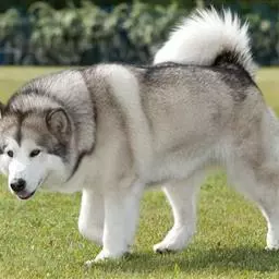 6. 尾巴:西伯利亚--放松状态时,尾巴自然下垂,较接近狼。兴奋或奔跑时,尾巴上摆,但尾尖始终成水平状态;阿拉斯加--尾根部粗壮,毛发旺盛,始终卷曲,尾尖弯曲接近尾根。