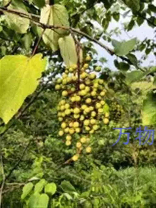 花单性,雌雄异株或杂性,黄绿色,有芳香,花瓣缺,排列成顶生下垂的圆锥花序,花序梗有疏柔毛,长10-20稀(30-60-80)厘米;雄花比雌花稍大,直径约1.2厘米;萼片3-6片,通常6片,覆瓦状排列,长卵形,长约6毫米,宽约3毫米,有密毛;花丝丝状,被软毛,花药椭圆形,基部着生,侧裂,有退化子房;雌花比雄花稍小,直径约9毫米;萼片3-6片,通常6片,卵形,长约4毫米,宽约2.5毫米,外面有密毛,内面有疏毛;子房上位,圆球形,无毛,花柱5或6,向外平展,柱头倒卵圆形,退化雄蕊多数,花丝短或缺。浆果成熟期紫红色,扁圆形,高(长)3-5毫米,直径5-7毫米,宽过于长,果梗细小,长0.6-2厘米;种子红棕色,圆形。花期4-5月,果熟期10-11月。