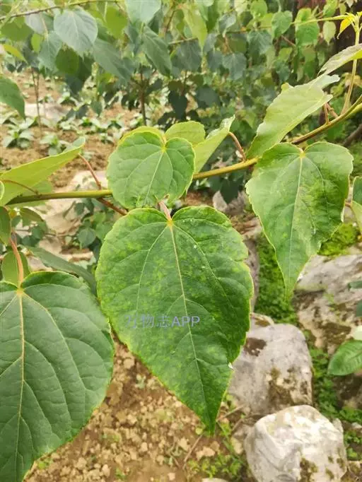 落叶乔木,高8-21米;树皮淡灰色,不裂;小枝圆柱形,细而脆,黄棕色,有明显的皮孔,冬日呈侧枝长于顶枝状态,枝条平展,近轮生,树冠长圆形,当年生枝条紫绿色,有淡黄色的长毛;冬芽有淡褐色毛,有4-6片锥状鳞片。叶薄革质或厚纸质,卵形或心状卵形,或为宽心形,长13-16厘米,稀达20厘米,宽12-15厘米,先端渐尖或尾状,基部通常心形,边缘有粗的齿,齿尖有腺体,上面深绿色,光滑无毛,下面有白粉,沿脉有疏柔毛,脉腋有丛毛,基部脉腋更多,通常5基出脉,第二对脉斜升到叶片的3/5处;叶柄长6-12厘米,或更长,圆柱状,无毛,下部有2-4个紫色、扁平腺体,基部稍膨大。
