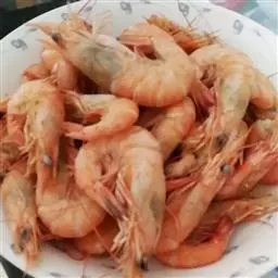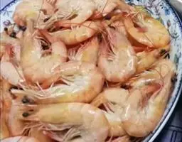 11、投入冷开水中冷却,保持虾的肉质不变老。(夏日可选用冰水,效果更好)