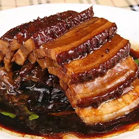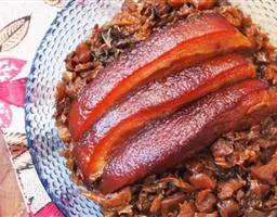 • 梅菜扣肉,汉族传统名菜,属客家菜 。制作材料有五花肉、梅菜、葱白、姜片等。