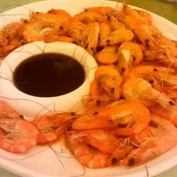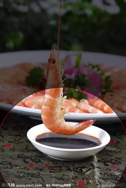 广州人喜欢用白灼之法来做虾,为的是保持其鲜、甜、嫩的原味,然后将虾剥壳蘸酱汁而食。