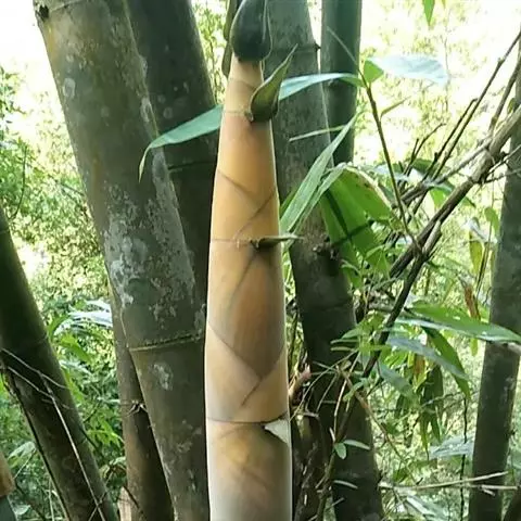 版纳甜龙竹 培土:未出土的竹笋,笋箨白色,笋质细白脆嫩,味鲜。竹笋出土受光后,笋箨变绿或褐红,竹笋老化,降低质量。因此,在竹笋出土之前,用细碎的湿润土培土20-40厘米,避免竹笋的笋箨见光变色,防止老化,提高竹笋质量。