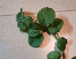 叶草质至近坚纸质,心状卵圆形或圆状卵圆形至椭圆形,长1.5-2.6(3)厘米,宽1.2-2.3厘米,先端钝或圆,基部圆形、浅心形至心形,边缘密生整齐圆齿,两面被微柔毛或糙伏毛,尤以下面为甚;叶柄长0.4-1.4(2.8)厘米,腹平背凸,密被微柔毛。