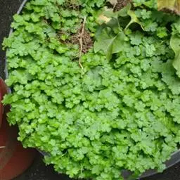 多利用匍匐茎扦插繁殖,多在每年3~5月进行,易成活。也可以播种繁殖。对水质要求不严,水体pH值6.5~7.0,水温20~25℃。其对肥料的需求量较多,生长旺盛阶段,每隔2-3周追肥一次。旺盛生长期注意疏剪株丛,通风透气,以防黄叶。、香菇草,伞形科,原产于南美,为多年生挺水性水生草本。其圆圆的叶,叶缘带有滚边,叶面油亮翠绿有光泽。而花为伞形花序,黄绿色,小小很迷你,春天至秋天都会开花。满满的圆币中,常点缀穿插着许多小花。其茎节很明显,一节一节的,每一节各长一枚叶,可一直延伸。其地下横走茎生长速度非常惊人,走到哪里就蔓延到哪里,为美观又易种的水生植物之一。
