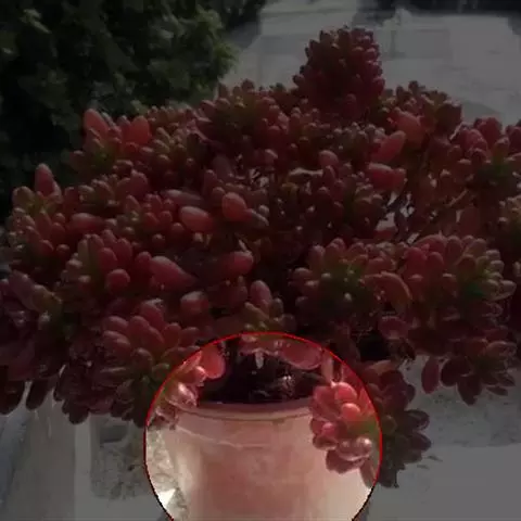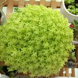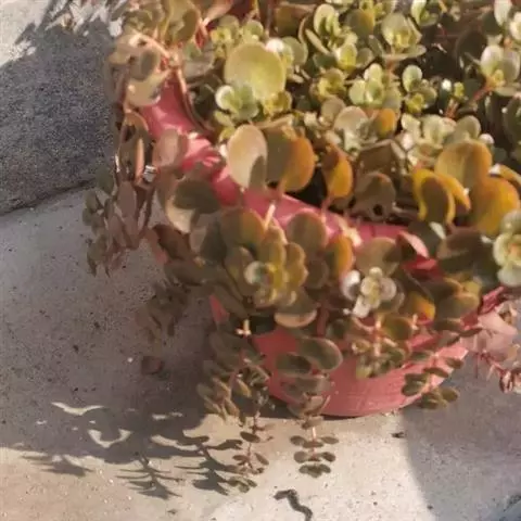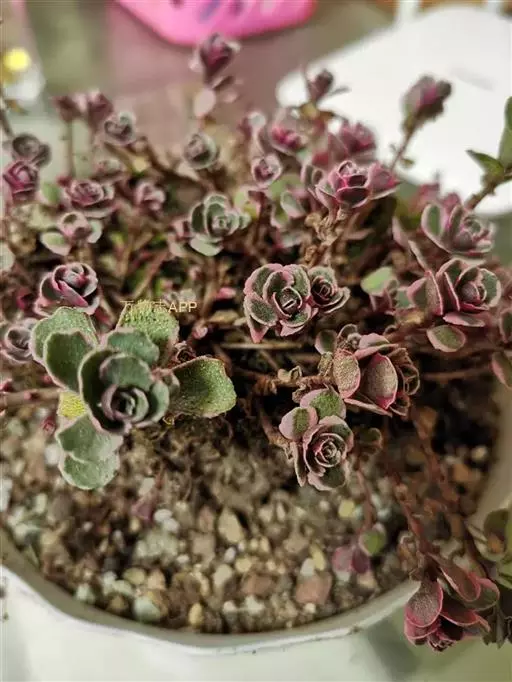 小球玫瑰(Phedimus spurius 'Schorbusser Blut')是景天科费菜属的多肉植物,也叫龙血景天。小球玫瑰有着精致纤巧的外形,耐寒和耐旱性非常好,并具有很强的繁殖能力,适宜作为护盆草或草坪草。在温差大、阳光充足的环境下,叶色会更加鲜艳,红彤彤的非常讨人喜爱。
