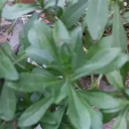 叶片表面无毛;竹片状至倒卵形或圆形,楔形,叶缘呈圆锯齿状;对生,偶有互生;无叶柄或有短柄。单片叶片长约1.5~3.5厘米,宽约1.0~1.2厘米。