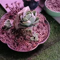 春秋冬三季浇水可不干不浇,浇则浇透。适量的 控制浇水频率有助于植株保持鲜艳的颜色和紧凑的株型。夏季应将植物置于稍阴凉爽处避免晒伤,在气温相对较低的傍晚或夜间浇水。30°C以上或5°C以下时应减少浇水频率,甚至停止浇水直到气温恢复。
