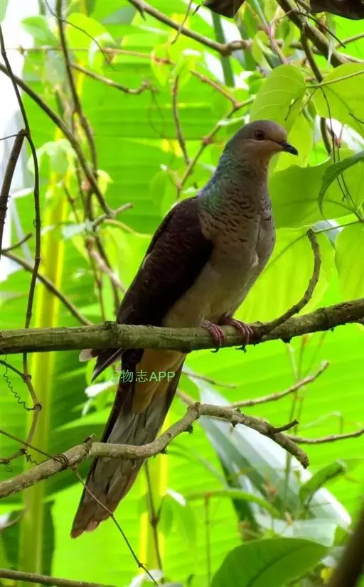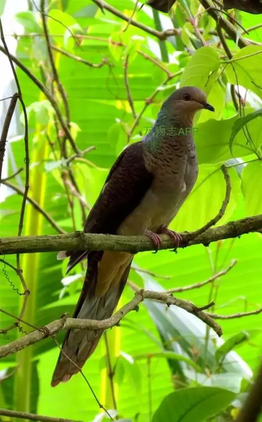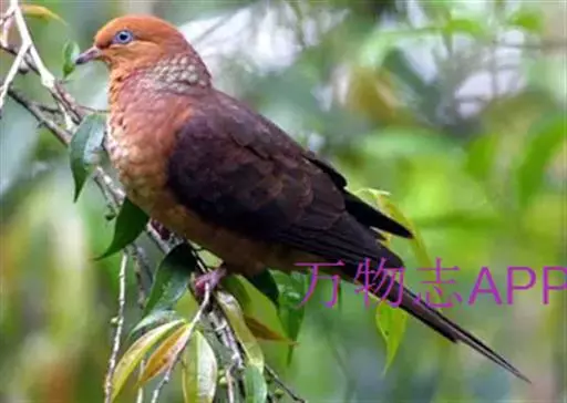 棕斑鸠,是鸽形目鸠鸽科斑鸠属鸟类。整个头和颈淡粉红色,头顶和前额较暗,颊、喉较淡,…