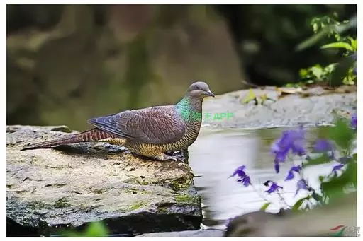 斑尾鹃鸠体长38厘米,是体大而尾长的褐色鹃鸠。背及尾满布黑色或褐色横斑。头灰,颈背呈亮蓝绿色。胸偏粉,…